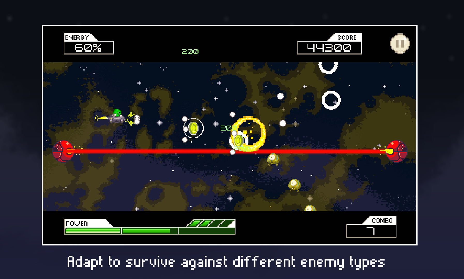 Action packed alien devastation! Epic boss battles with shifting mechanics and behaviours! Different weapon levels awarded by defeating the menace and activating your power up system! Hazardous obstacles to overcome as you power your way through the nebulae of space! Navigate through the different sectors of space, blast the alien colonies and end this war to return peace to the galaxy! Addictive survival based gameplay! Retro style pixel graphics! Simple, pick up and play controls! How long can you survive? Well what are you waiting for!?
